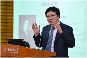 会议伊始,刘松柏教授从咨询行业的发展历史和特点入手,通过企业实践中的实例,详细介绍了管理咨询方向就业面广、实践性强、内容涉及面广等特点。他详细阐述了作为全国同类首屈一指的专业方向,管理咨询方向立志培养在企业咨询行业中最优秀、最有潜力的国际化人才,简述了北师大MBA管理咨询方向的课程设置与优质师资,解析了究竟什么样的学生更适合北师大MBA管理咨询方向这一问题。刘教授系统、深入的讲述与风趣、随和的言谈吸引了全场来宾的关注,引起了台下热烈的掌声。