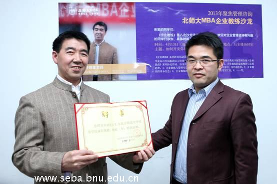 图1:北师大MBA教育中心主任苏凇老师为齐炳堂老师颁发证书