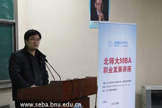 2012年12月9日下午16:00——17:50,北师大MBA职业发展讲座“2013届毕业生就业形势、就业政策解读”在电子楼阶梯教室成功举办。