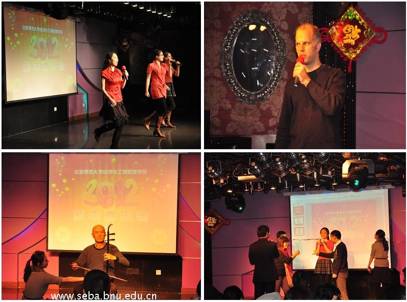 2012新年喜乐会,精彩纷呈的文艺节目让大家赞不绝口。歌舞《不想长大》彰显了新员工的青春活力;青年教师的合唱《弯弯的月亮》博得了阵阵掌声;外籍教师Tavis Barr的一曲美国乡村民歌洋溢着异国情调;袁强老师的二胡独奏《二泉映月》将大家引入夜阑人静、泉清月冷的意境;郑飞虎老师的猜谜游戏更是给会场带来一个小高潮。另外,还进行了各类游艺节目和抽奖活动。2012新年喜乐会在祥和美满的欢乐氛围中圆满结束,大家共同为即将到到来的2012年发出诚挚的祝福!