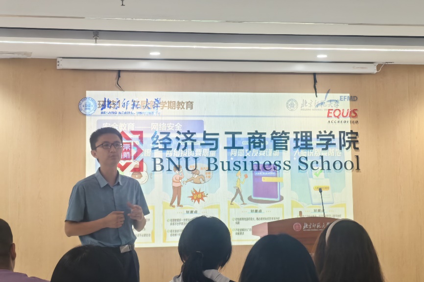 为引导新生增强规则意识与安全观念,学院于9月19日在教九502教室召开新生年级大会暨安全教育大会。在爱校荣校教育方面,学院党委副书记王骏通过介绍北京市优秀毕业生、学校十佳大学生的先进事迹,激发同学们的爱校荣校情怀。在校规校纪警示教育方面,学院党委副书记王骏详细解读了请假制度和校规校纪,强调了考试违纪及作弊、违反学业科研体测竞赛规定、打架斗殴、酗酒、非法集会或者聚众闹事、违反宿舍管理规定、扰乱校园秩序等行为的后果危害及相关条款,以真实案例为同学们敲响警钟。在安全稳定工作方面,他介绍了宿舍安全和消防安全管理规定,解读了校园宗教政策,剖析了电信诈骗高发类型与防范要点,结合校园交通事故案例重申了校园交通安全规范。在建设文明校园方面,他倡导同学们杜绝乱贴乱画、大声喧哗等不文明行为,形成勤俭节约、垃圾分类等文明理念。他希望同学们尽快适应成年人身份,承担起成年人应当承担的责任和义务,明辨是非、知晓好坏、守住底线,在学习和实践中不断历练自己。